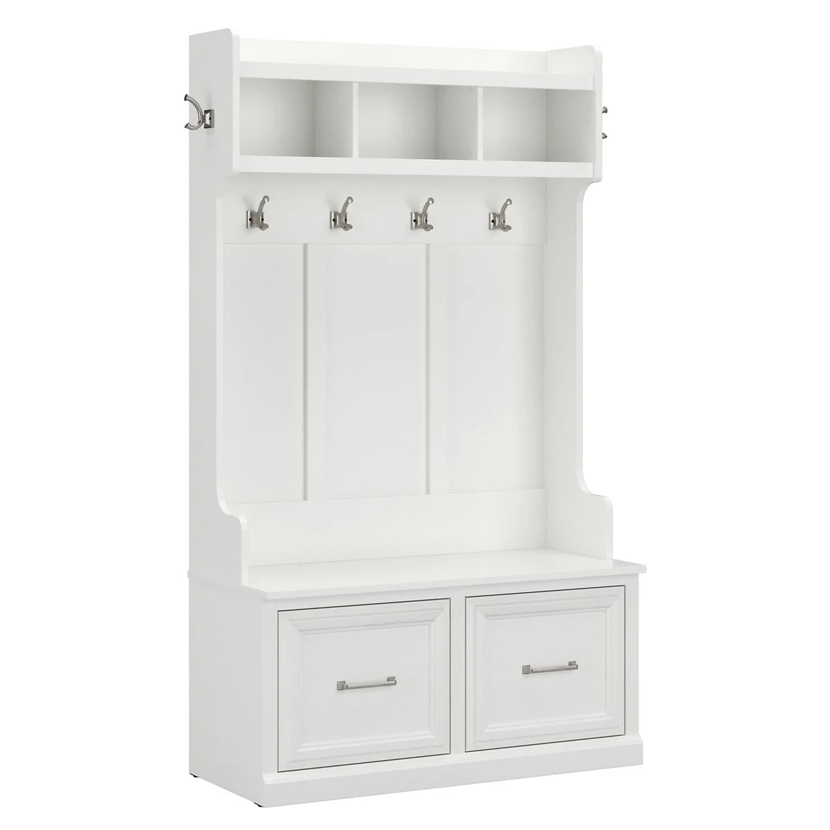 - Trois compartiments ouverts et une longue étagère supérieure sont parfaits pour les gants, les clés et autres accessoires