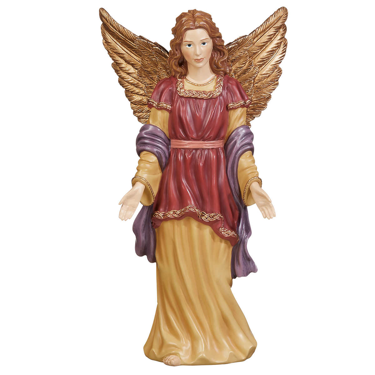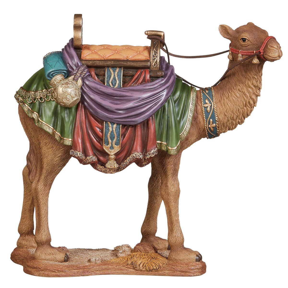 L'ensemble en résine de 13 pièces comprend une crèche, Marie, Joseph, l'Enfant Jésus, une crèche, un berger et un mouton, un ange, 3 rois, un chameau, un âne et un bœuf.
